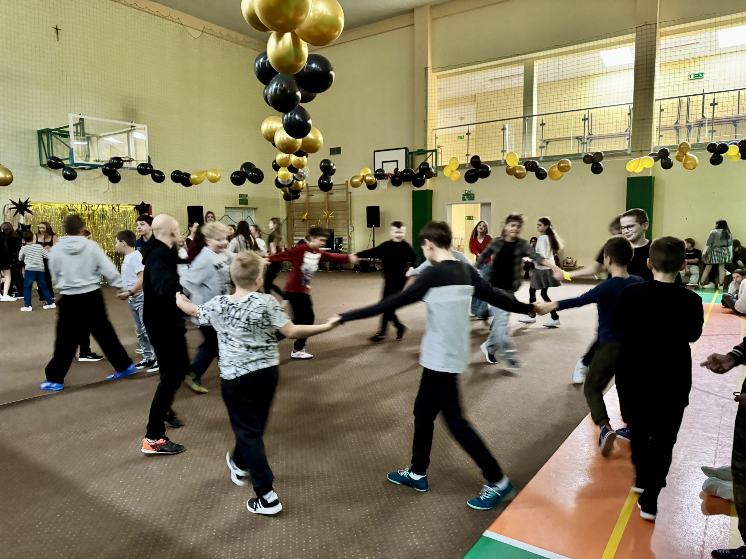 W godzinach 9.15–12.15 w zabawie uczestniczyły klasy 0–3, natomiast uczniowie klas 4–8 bawili się w godzinach 12.30–15.30.