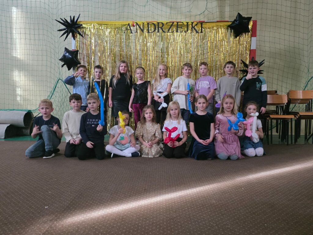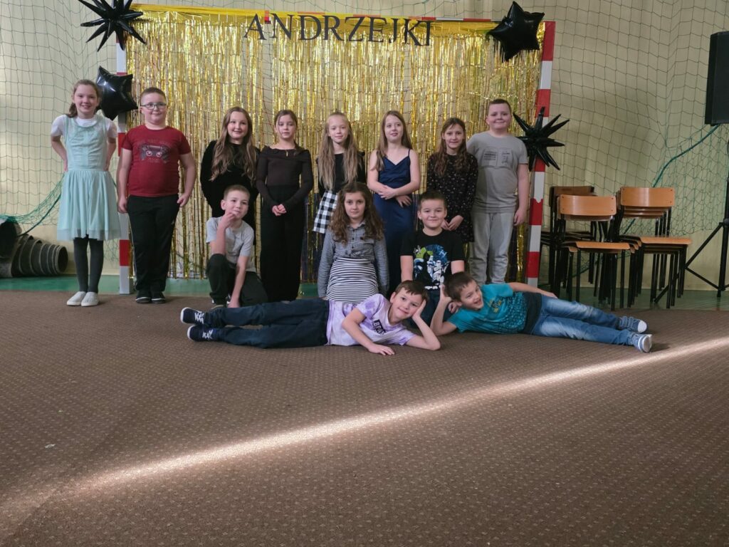 Jedną z głównych atrakcji były wróżby andrzejkowe, które z dużym zaangażowaniem przygotowała klasa 4. Uczniowie mogli poznać swoją “przyszłość”, losując symboliczne karteczki, częstując się ciasteczkami z wróżbą czy korzystając z wielu innych tradycyjnych zabaw. Rodzice zatroszczyli się o poczęstunek, dzięki czemu każdy mógł nabrać sił w czasie przerw od tańca i wróżb. O odpowiednią atmosferę zadbali absolwenci naszej szkoły, którzy przygotowali oprawę muzyczną i poprowadzili wspólną zabawę.