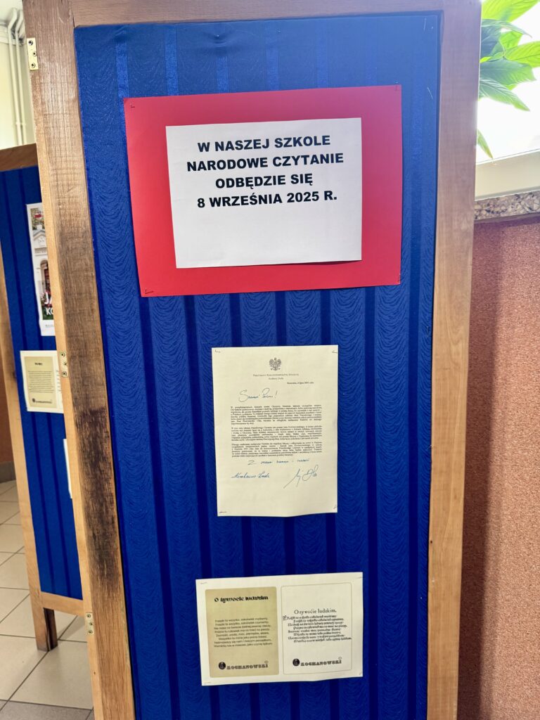8 września w naszej szkole odbyła się akcja Narodowego Czytania, w której uczestniczyli uczniowie klas V–VIII. Tegoroczna edycja poświęcona była twórczości Jana Kochanowskiego – jednego z najwybitniejszych poetów polskiego renesansu.