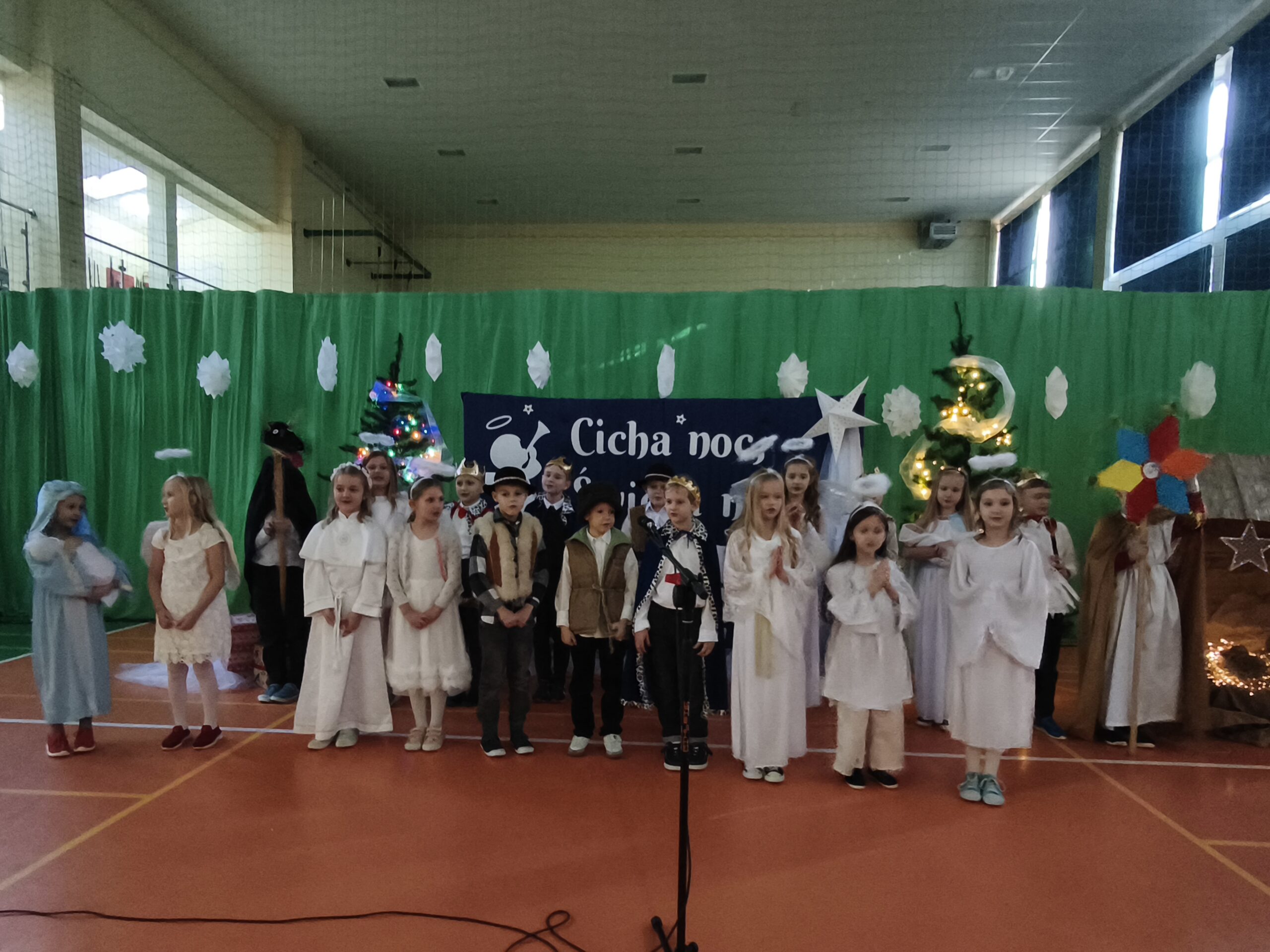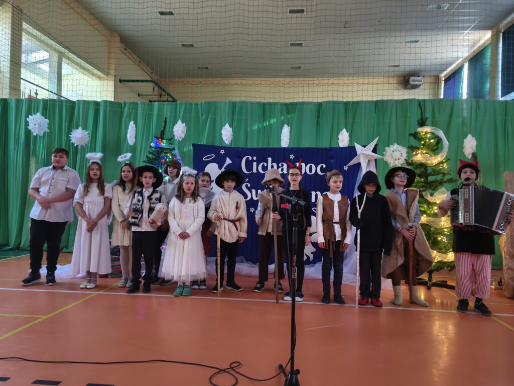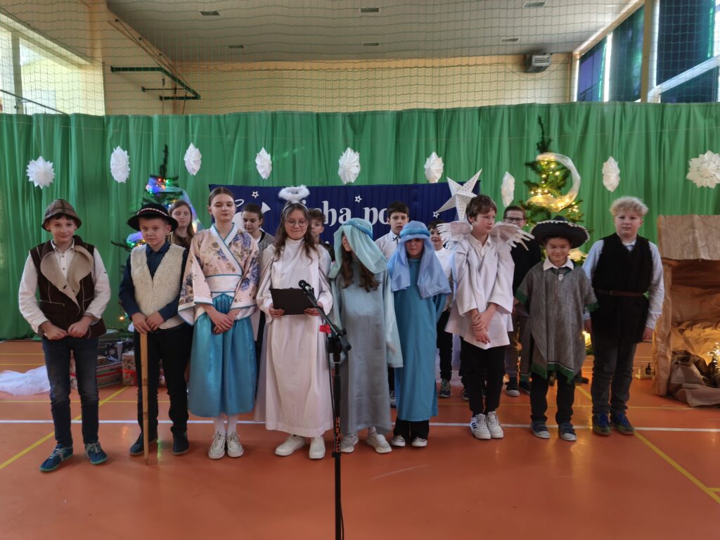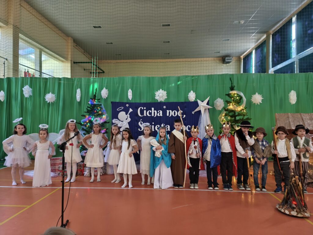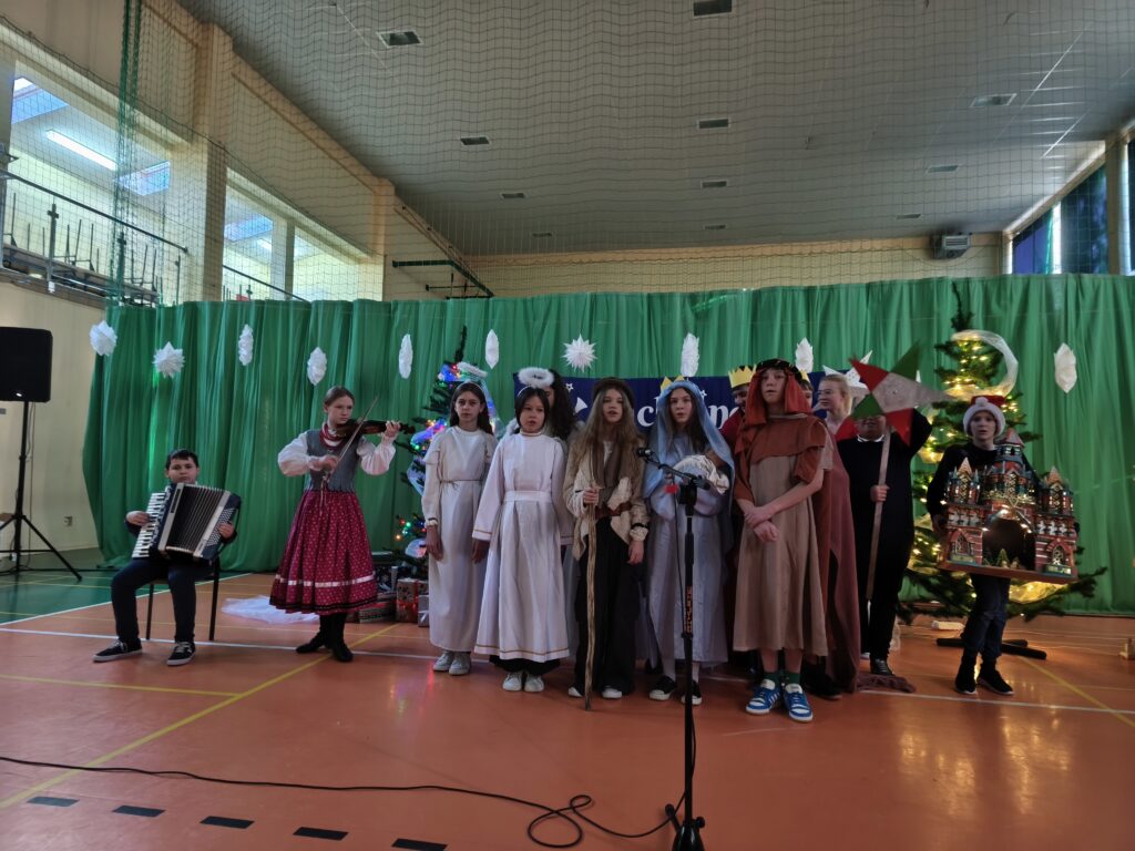 W przeglądzie wzięły udział liczne grupy kolędnicze, które zaprezentowały się w barwnych, tradycyjnych strojach kolędniczych. Uczestnicy występowali z dużym zaangażowaniem, łącząc śpiew kolęd i pastorałek z grą na instrumentach muzycznych, co nadało występom wyjątkowy, świąteczny charakter. Publiczność mogła usłyszeć zarówno znane, jak i mniej popularne utwory bożonarodzeniowe. Atmosfera wydarzenia była bardzo radosna. Występy spotkały się z ciepłym przyjęciem widowni, która nagradzała wykonawców brawami. Przegląd był doskonałą okazją do zaprezentowania talentów uczniów oraz wspólnego przeżywania magii zbliżających się świąt Bożego Narodzenia.