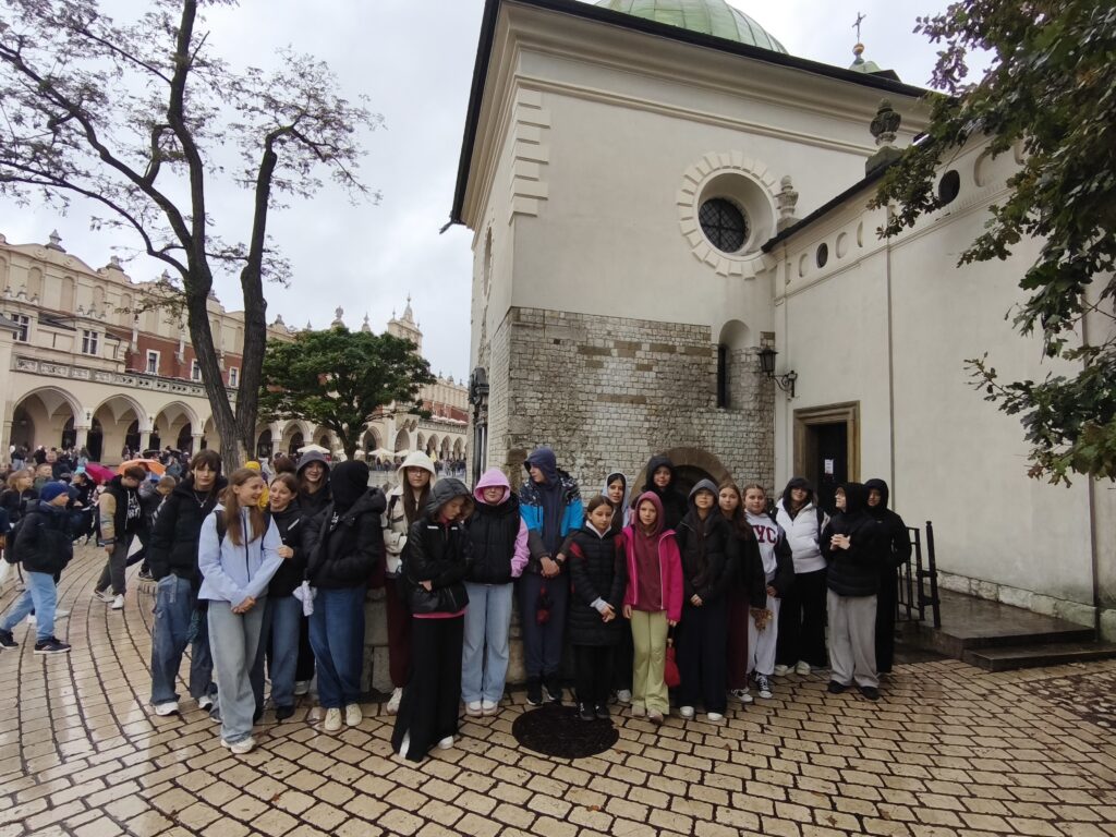 10 października 2025 roku 45 uczniów naszej szkoły wraz z opiekunami- Paniami: Beatą Hołysz, Barbarą Obłończyk i Bożeną Ziobrowską- wzięło udział w wycieczce do Krakowa zorganizowanej przez Małopolską Organizację Turystyczną z siedzibą w Krakowie w ramach projektu „Poznaj Małopolskę”. Pierwszym punktem wyjazdu były zajęcia w Małopolskim Centrum Nauki Cogiteon, gdzie uczniowie mogli samodzielnie zgłębiać tajniki z różnych dziedzin, korzystając z niezwykle ciekawych, interaktywnych stanowisk. Następnie, już z przewodnikami i podzieleni na dwie grupy, mieli okazję zobaczyć zabytki dawnej stolicy Polski. Przeszli szlakiem zabytków romańskich- zobaczyli kościoły św. Andrzeja i św. Wojciecha; najstarsze budowle sakralne w Polsce, które zachwycają swoją prostotą i monumentalnością. Spacerując po Wzgórzu Wawelskim uczestnicy mogli poczuć atmosferę, w jakiej żyli polscy królowie. Katedra Wawelska – obiekt kultu oraz symbol polskiej historii i tożsamości- była miejscem, gdzie uczniowie mieli szansę poszerzyć swoją wiedzę na temat władców polskich. To był niezwykły dzień, nauka połączona z zabawą. Dziękujemy Pani Dyrektor za zgłoszenie szkoły do projektu.