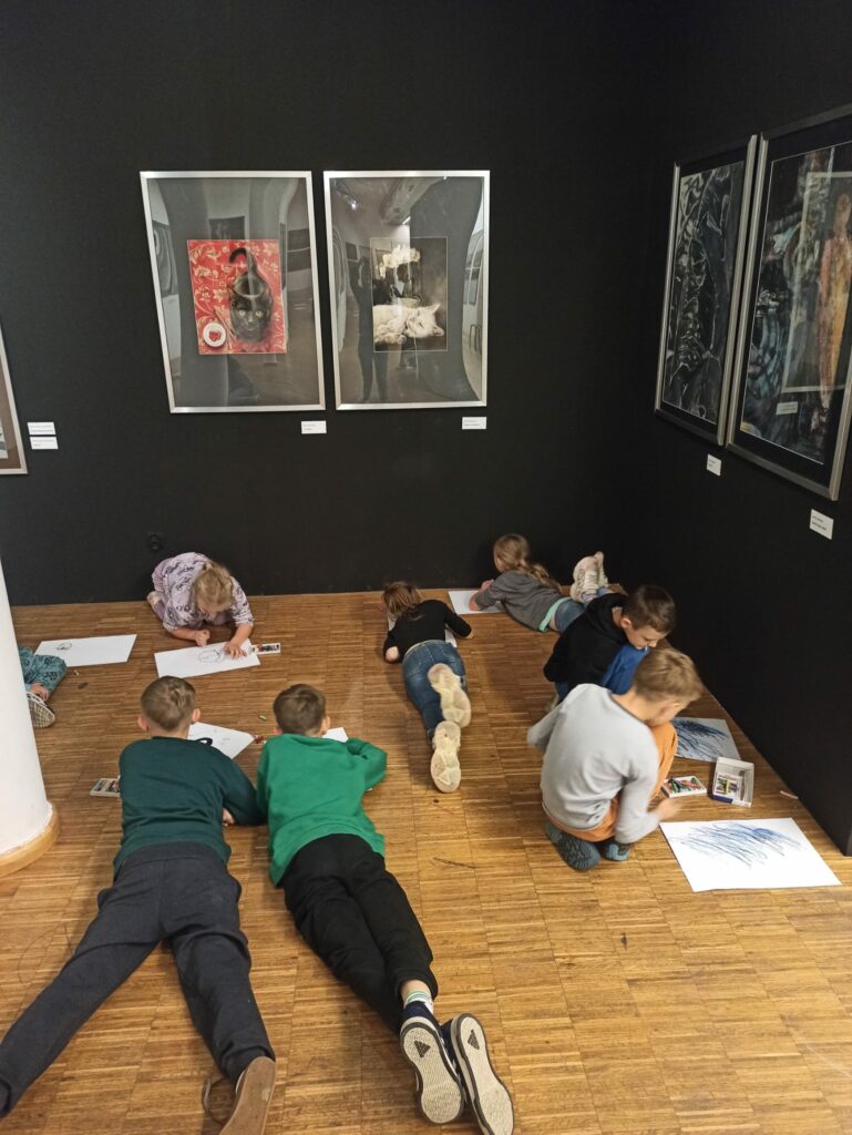Podczas części praktycznej uczniowie stworzyli własne prace, rozwijając swoją kreatywność i wyobraźnię. Atmosfera była pełna twórczego zaangażowania, a efekty pracy – wyjątkowe i kolorowe. Własnoręcznie wykonane rysunki dzieci zabrały ze sobą jako pamiątkę z warsztatów.