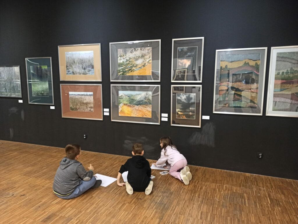 Uczniowie wzięli udział w warsztatach plastycznych. Dzieci miały okazję zapoznać się z techniką rysunku pastelami oraz obejrzeć jubileuszową wystawę prac artystów tworzących w tej technice „Pasteliści jubileuszowo”.